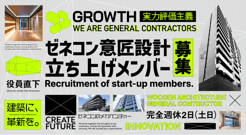 - これまでに何か一つでも、熱量を注いだ経験がある方に出会いたいと考えています。建築の中で突き抜けたスキルや知識はもちろん、建築とは異なる分野の経験でも、問題ございません。何か一つでも自信を持って、これはやりきった!真面目に取り組んだ!と言える経験を持っている方のご応募をお待ちしています。